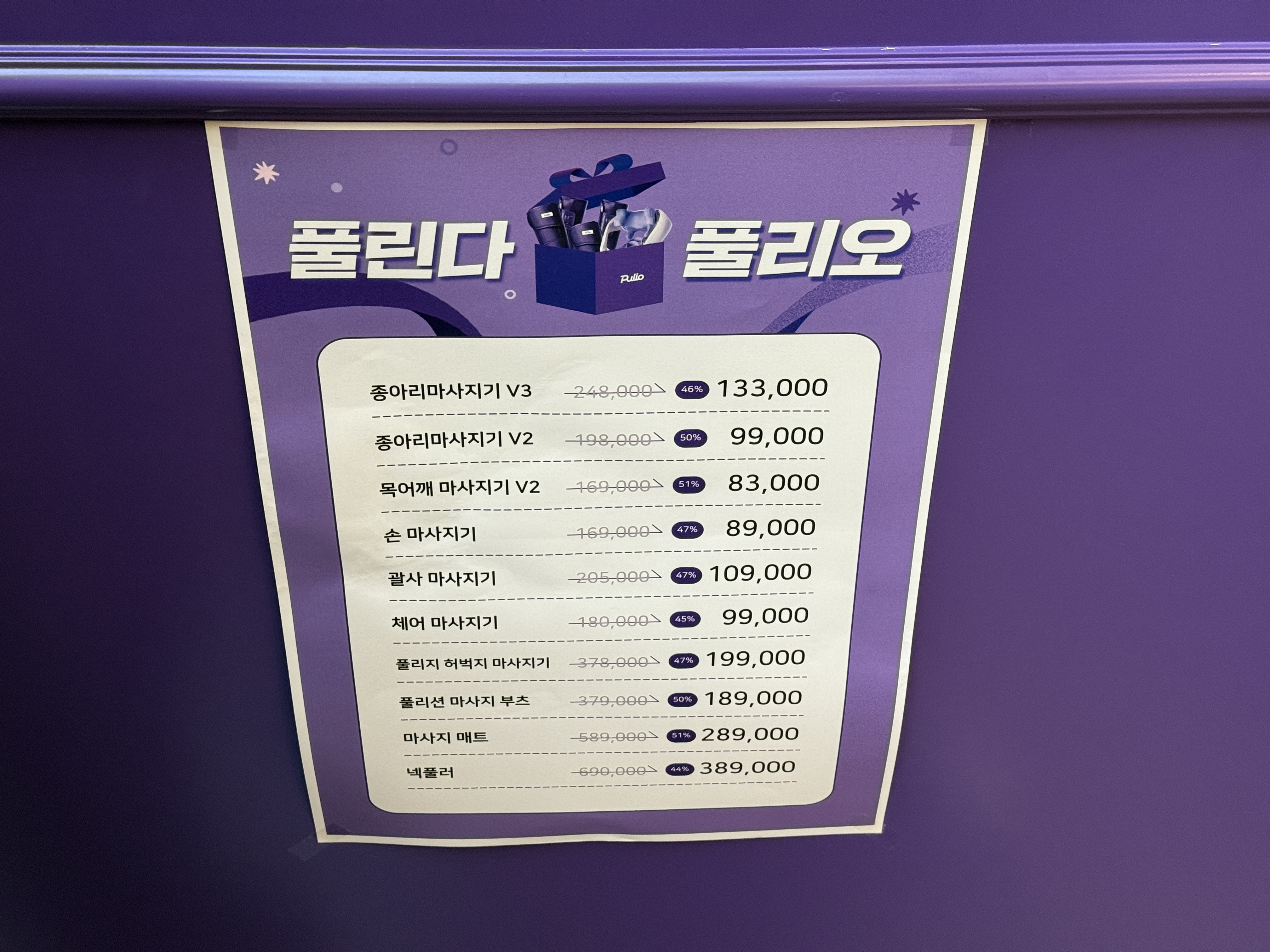 풀리오 마사지 부츠는 단순한 종아리 마사지기를 넘어, 발 전체를 감싸며 입체적으로 피로를 풀어주는 제품이었어요. 직접 체험해보고 할인된 가격으로 구매까지 할 수 있는 코엑스 팝업스토어 방문, 정말 만족스러웠습니다.