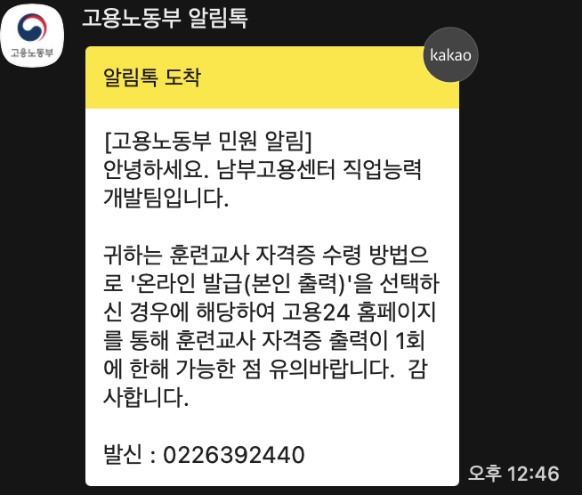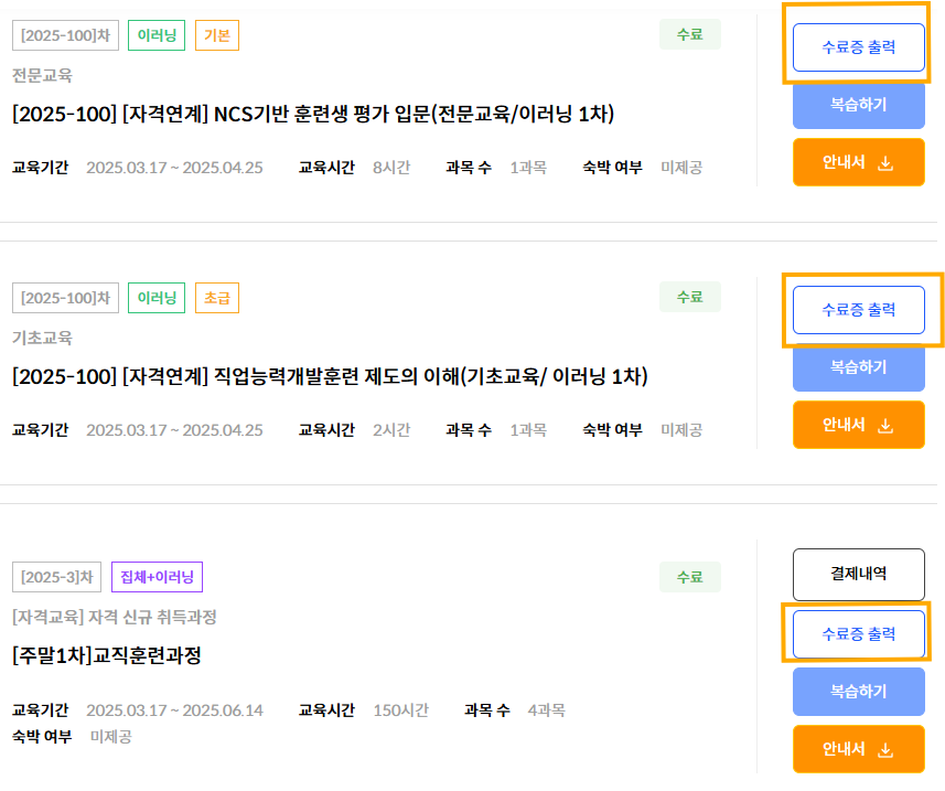 ※ 이 수료증이 나중에 자격증 발급 신청할 때 필요해요!
