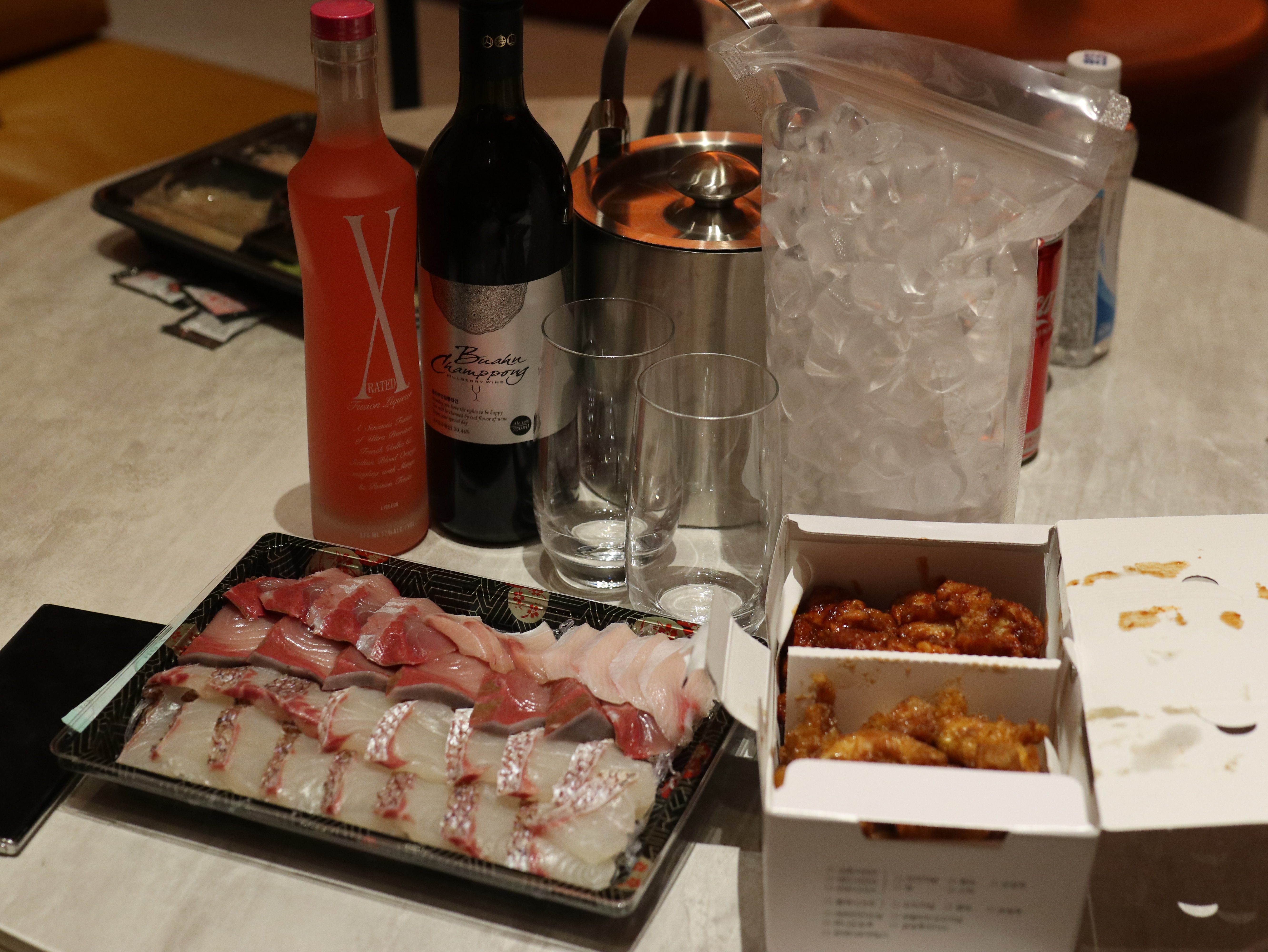 숙성회는 방어/돔 반반으로 달맞이에서 주문했는데 강남 호캉스 배달횟집으로 2번째인데 여전히 맛있었다. 방어보다는 돔이 더 맛있었다! 객실 소파도 자리가 널널해서 다들 편하게 반쯤 누워서(?) 술도 마시고 얘기도 하고 객실에 있는 태블릿으로 유투브도 보고 좋은 시간을 보냈다. 서비스적인 측면은 조금 아쉬웠지만 전반적으로 인테리어나 시설은 만족스러웠는데 부대시설 이용 후기는 to be continue!