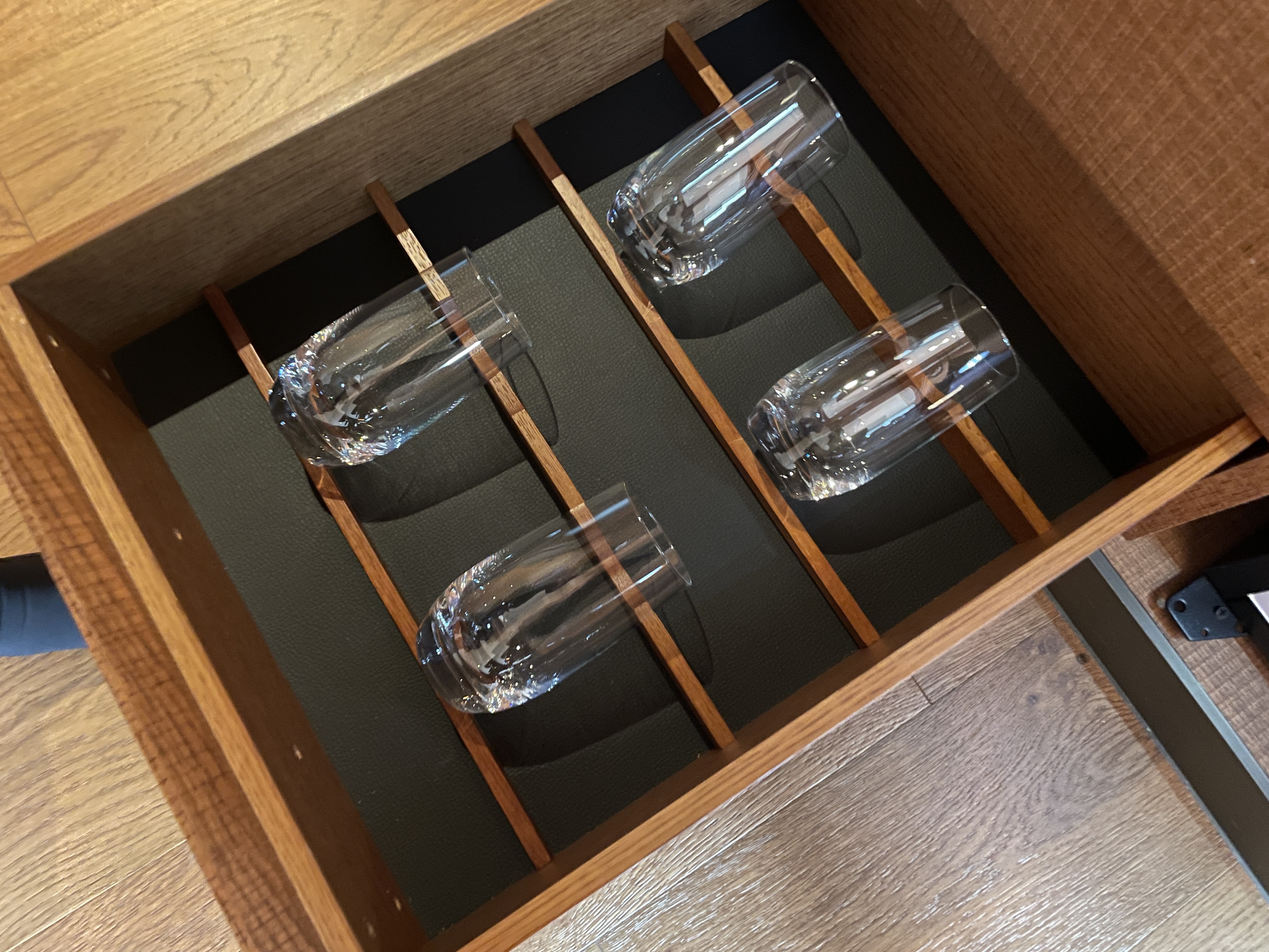 입구에 있는 바에는 앞접시와 포크, 오프너, 와인잔, 커피잔, 유리잔이 서랍마다 구비되어있었다. 룸서비스가 아직 이용이 불가능해서그런지 포크와 앞접시까지 인원수에 맞춰서 구비되어있는 점이 마음에 들었다. 덕분에 친구들과 함께 디저트를 먹으려고 사왔는데 예쁜 접시가 있어서 기분이 좋았다 😊