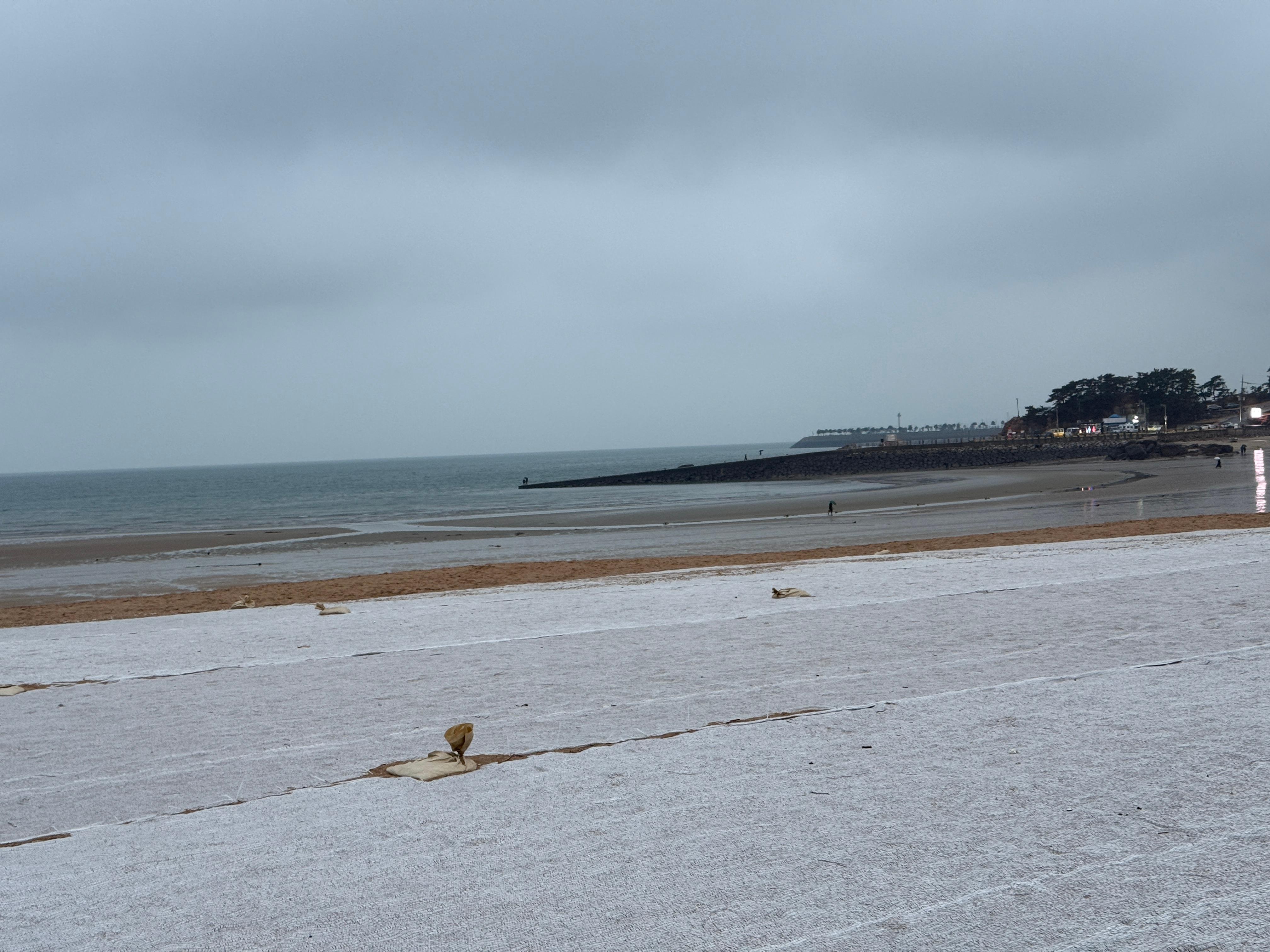 겨울 을왕리는 모래날림 방지를 위해 하얀 방지막으로 모래를 다 덮어두어 뷰는 조금 아쉬웠다. 밤이 되면 근처에 주택이 거의 없다보니 여기저기에서 불꽃놀이들을 많이 한다! 덕분에 직접 불꽃놀이 안해도 많이 볼 수 있다.