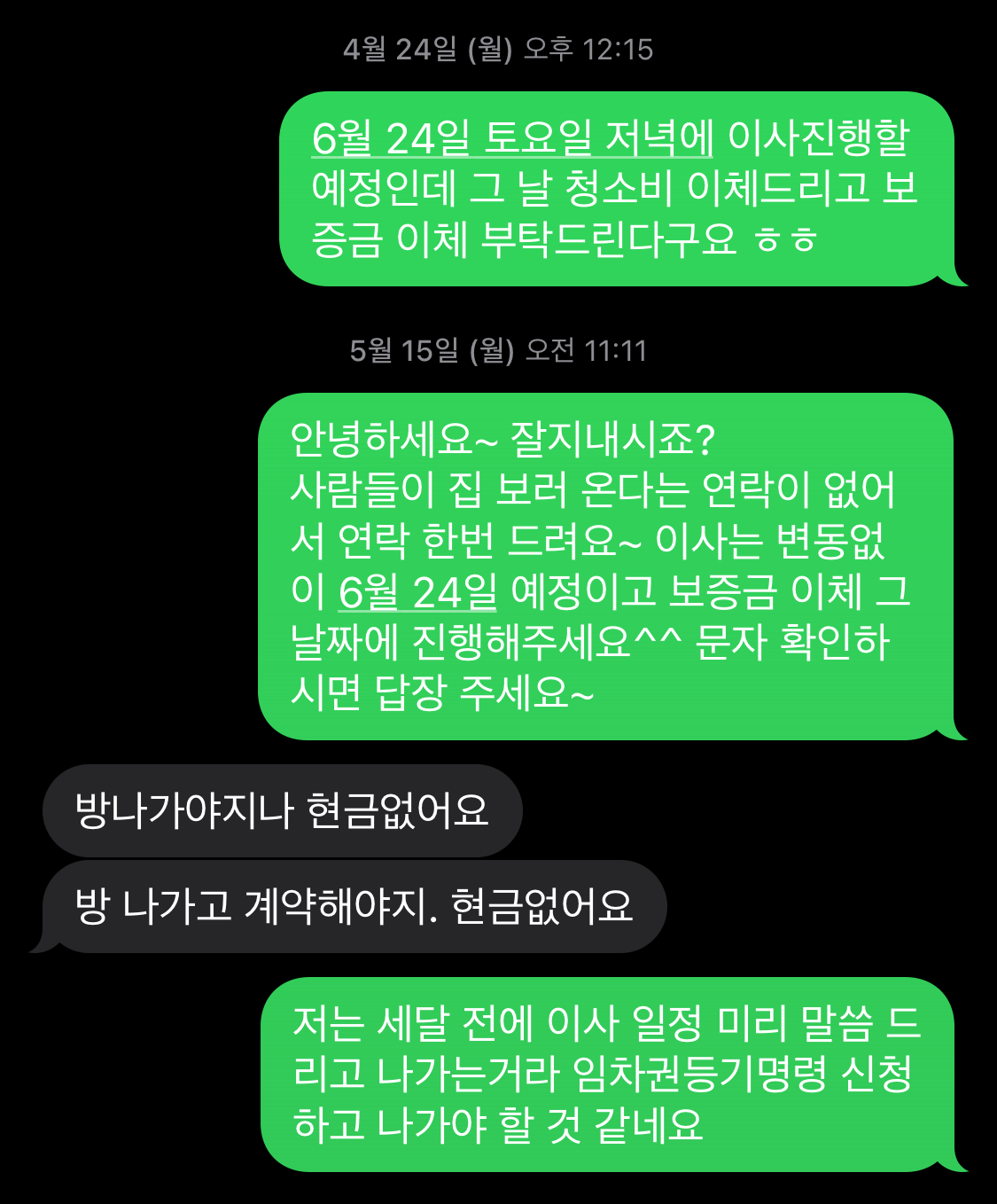 하지만 1달간 이런 대화를 거쳤음에도 집주인은 '아직까지도 돈이 없다.'