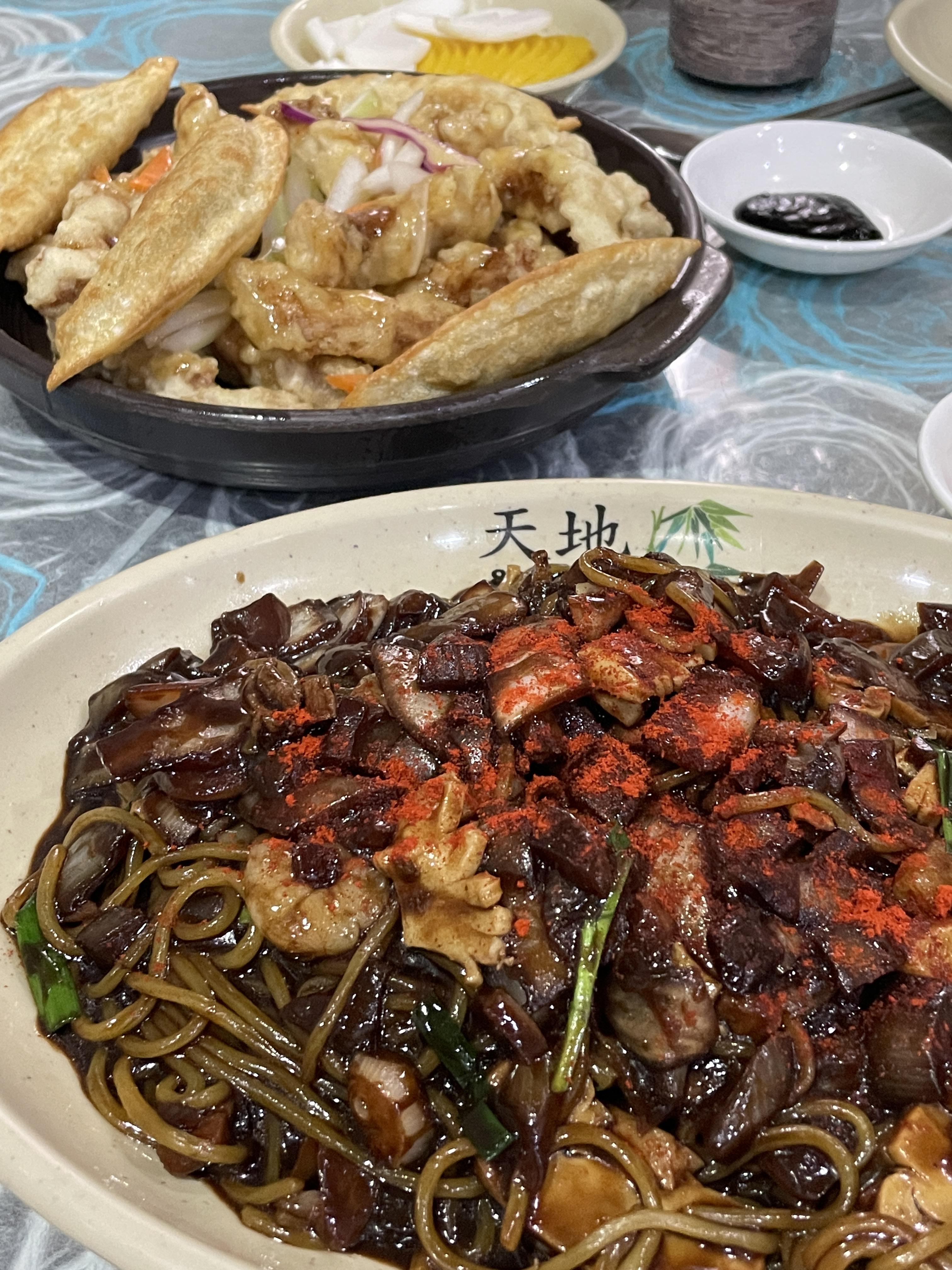 이삿날 먹은 짜장면과 탕수육. 제법 짜장면도 맛있고 가게 앞에 오토바이가 있는거 보고, '이야 직접배달하는건 진짜 힘숨찐이겠다' 했다. 겉은 허름하고 손님 없어보이는데 배달주문도 계속 들어오고 모처럼 부족한 맛 생각 안나게 맛있는 짜장면!
