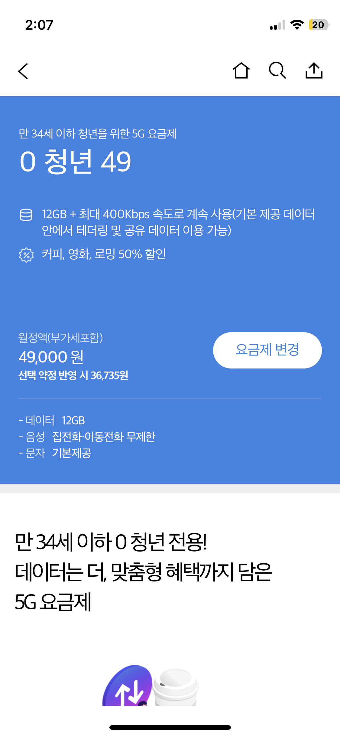 청소년 이후엔 성인요금제를 늘 써왔는데 드디어 청년전용 요금제가 SKT에서 출시됐다. 미리 예약해뒀더니 투썸 조각케이크 기프티콘도 받고 같은 금액대비 더 많은 데이터를 쓸 수 있게 되었다!