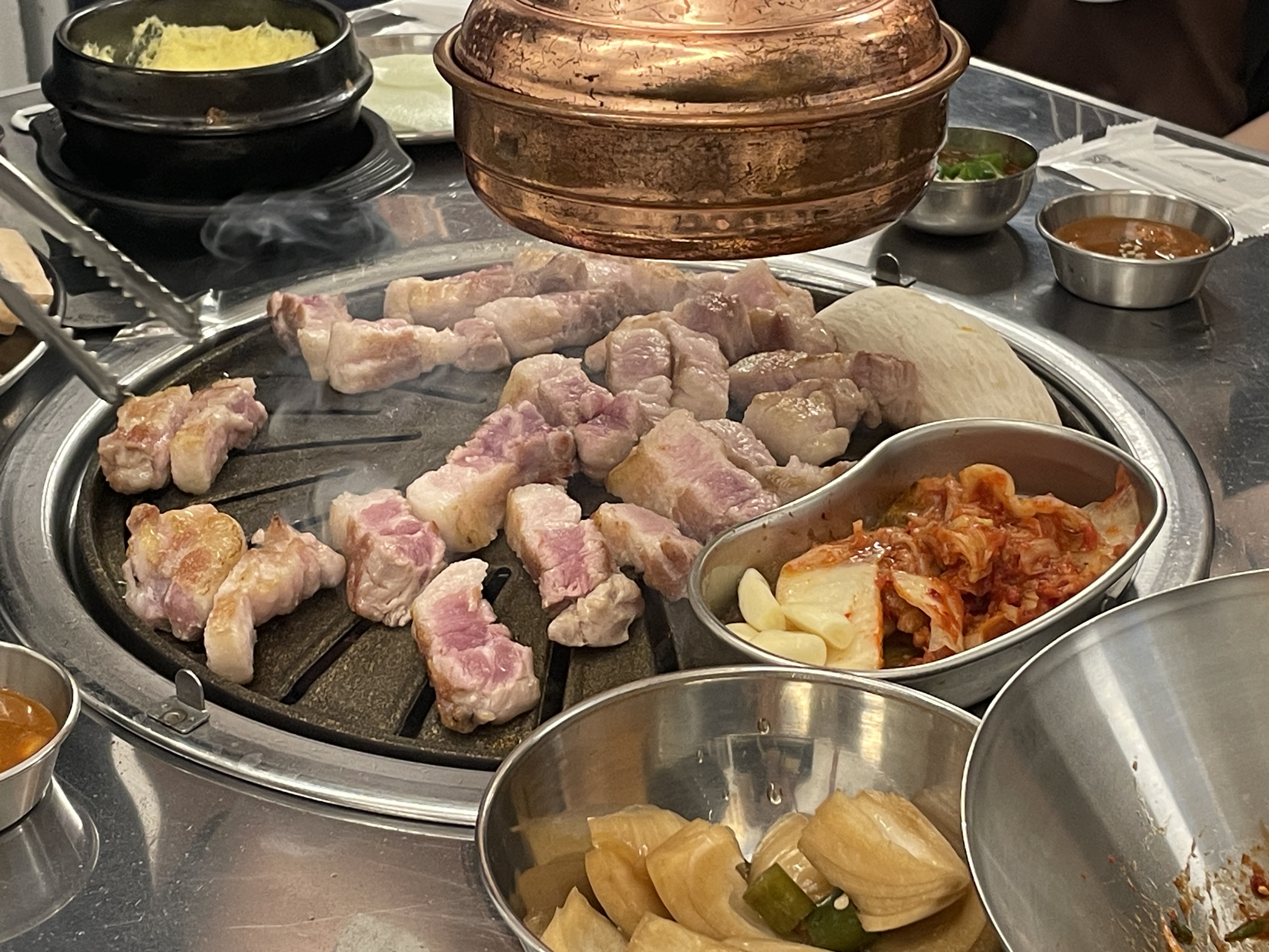 이 날 내가 코로나걸렸었는데 임산부가 있어서 약속을 미룰까 했더니 임산부도 나와 기간이 2-3일정도 겹치게 코로나에 걸렸었다며 그냥 만났었다. 동네카페치고는 맛있어요 했는데 동네인 지현씨가 길안내도 해주고 예슬언니가 맛있는 고기도 사줬다. 나중에 사진 보는데 너무 고마워서 명절 전에 달달한 과일 선물로 보냈당 😋 언니 고마워요