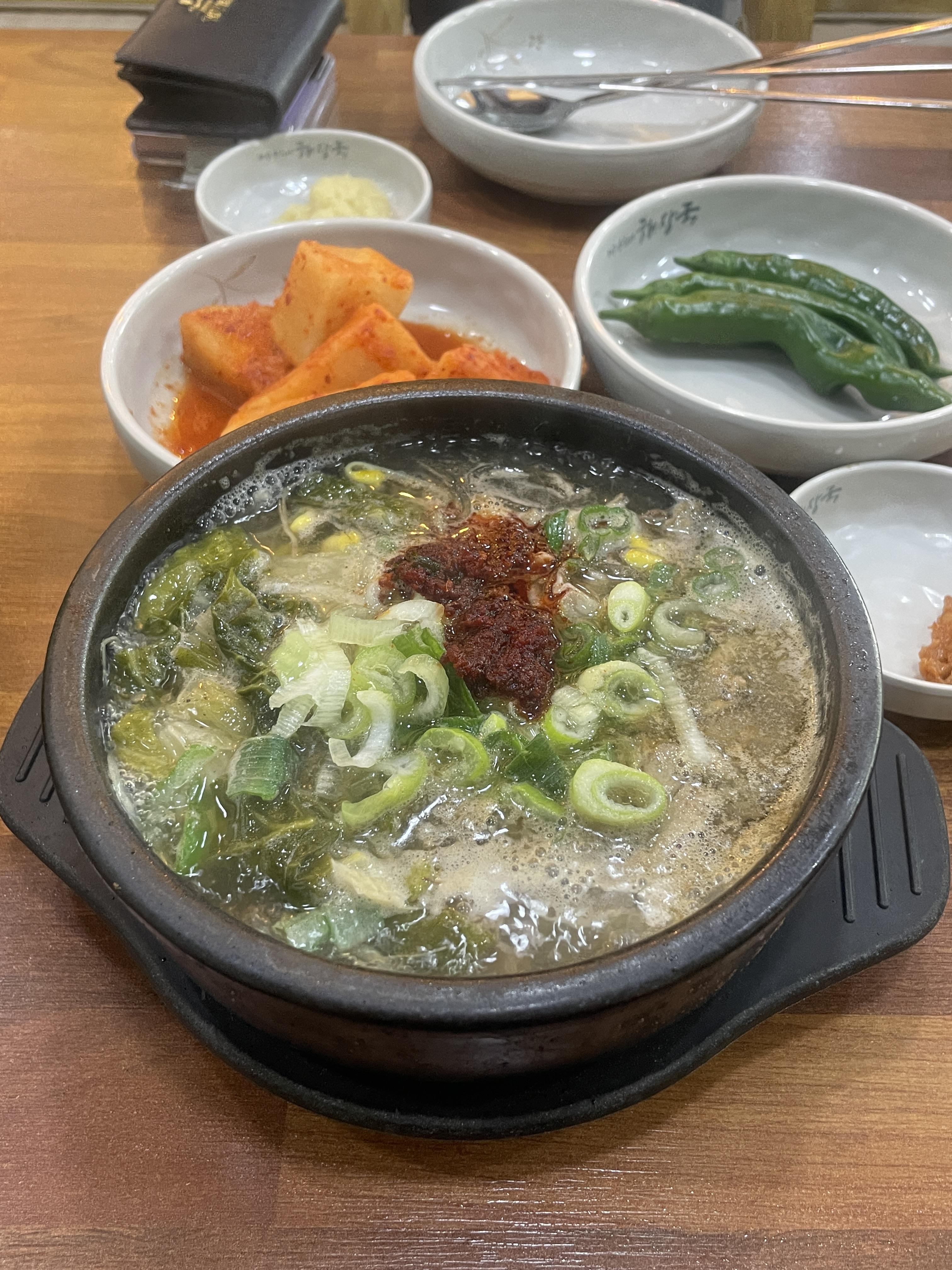 실장님이랑 둘이 그동안 가야지 가야지 하던 제주은희네해장국 다녀왔다! 회사 근처에 맛있는 국밥집이 진짜진짜 하나도 없어서 여기가 제일 맛있는 국밥집이다ㅠ 가끔 밥에 국 말아서 든든한 식사 하고 싶을 때 있는데 모처럼 든든하게 식사했던 날! 간이 좀 센편이었다고 하셨는데 이 날도 짠맛을 잘 못느꼈었다. 아! 다만 먹고 물을 엄청엄청 많이 마셨다.