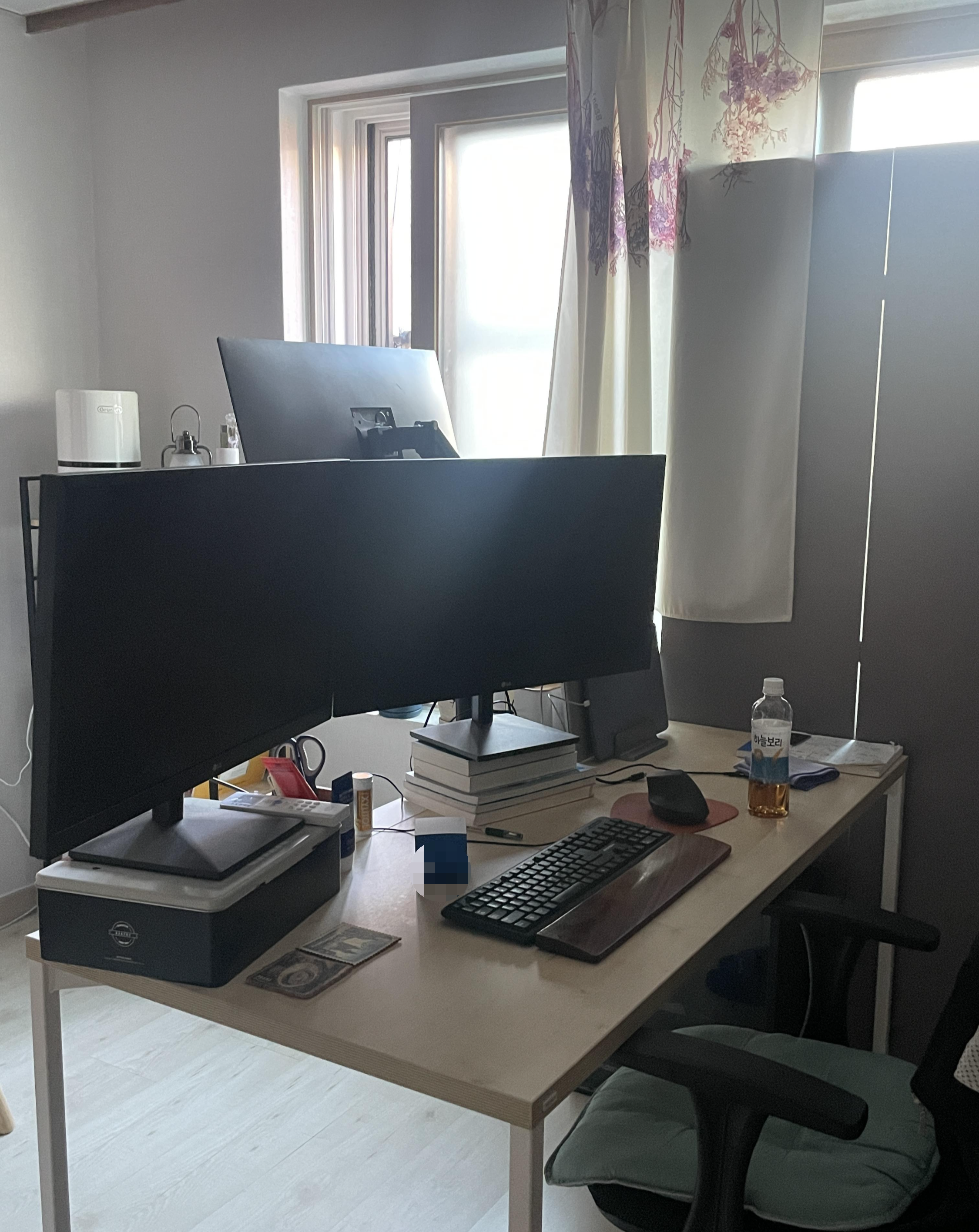 그래서 회사에서 재택으로 야근하라고 데스크탑이랑 모니터 다 가져가라고 해주셔서 다 챙겨와버렸고 아파서 잠들어버렸는데 슈가 컴퓨터를 스샤샥 셋팅해줬다! 이 사진 보면서 지혜가 모니터 아래에 책 깔아준 건 사랑이라고 했다. 그렇게 나의 슬기롭지 못하고 무지막지했던 야근과 주말출근 꼼뻬준비가 시작되는데...?