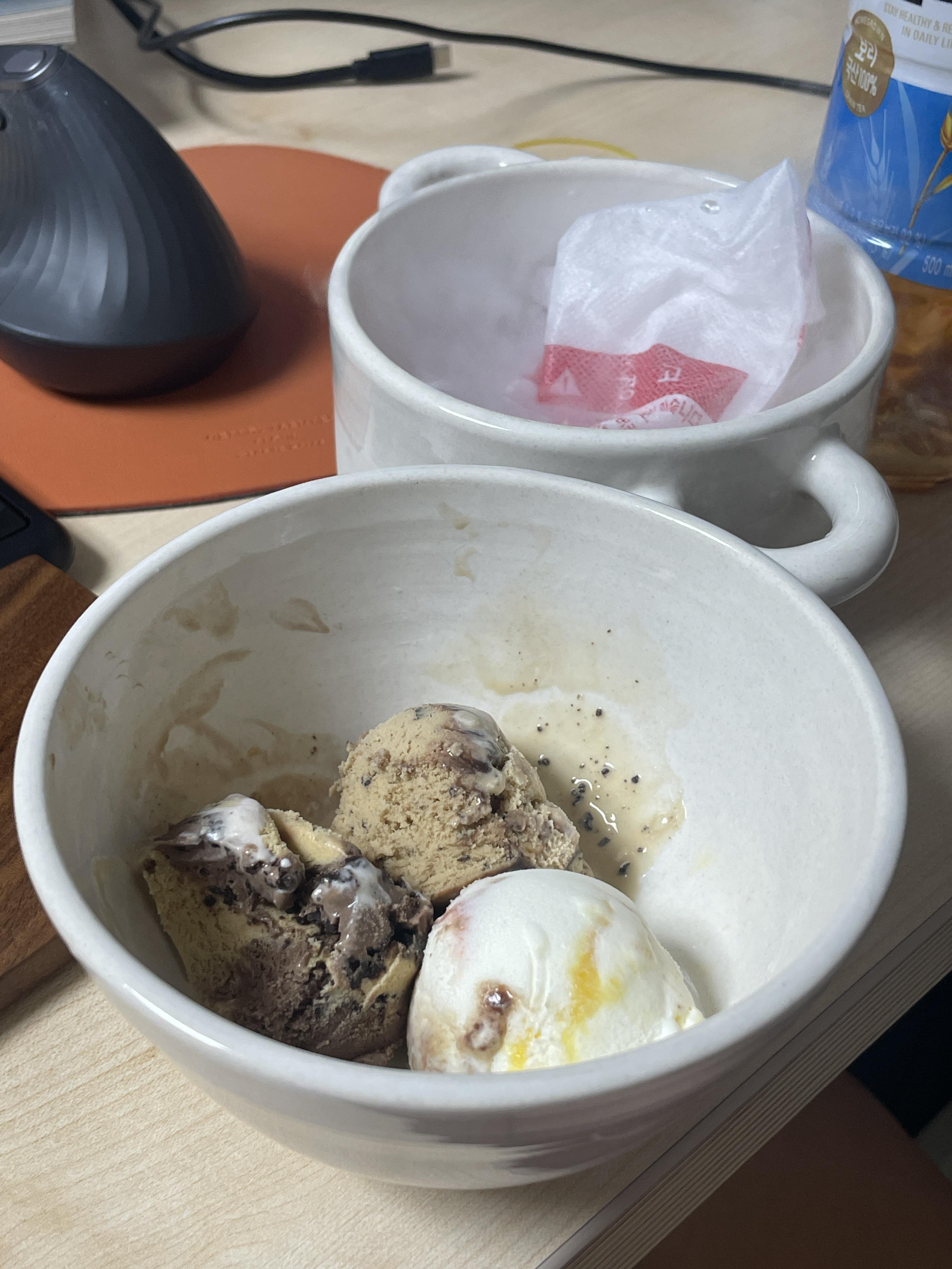 밥먹고 먹으라며 슈가 베라 기프티콘을 보내줘서 집 앞 3분거리를 다녀왔지만 3분 산책도 힘들었던 나였다. 두번째 코로나는 별로 안아프다고 하는데 죽을만큼은 아니었지만 초기엔 2시간 일하면 10분은 누워서 아무것도 못하고 2시간 더 일하고 밥먹고 20분 누워있다가 다시 일어나서 2시간 일하고 20분 눕고의 반복이었다. 열도 조금 났는데 머리가 너무너무 아팠다. 잠시 누웠다 일어나면 디저트를 먹으며 활기를 찾았다. 미정이가 준 코코로카라 바나나 푸딩은 존맛탱이었다 그리고 이때까지 나는 디저트가 너무 달콤해서 몰랐다 코로나로 인해 짠맛을 잘 느끼지 못했다는 것을..! 이 푸딩 보니까 갑자기 여의도에 가고싶어요