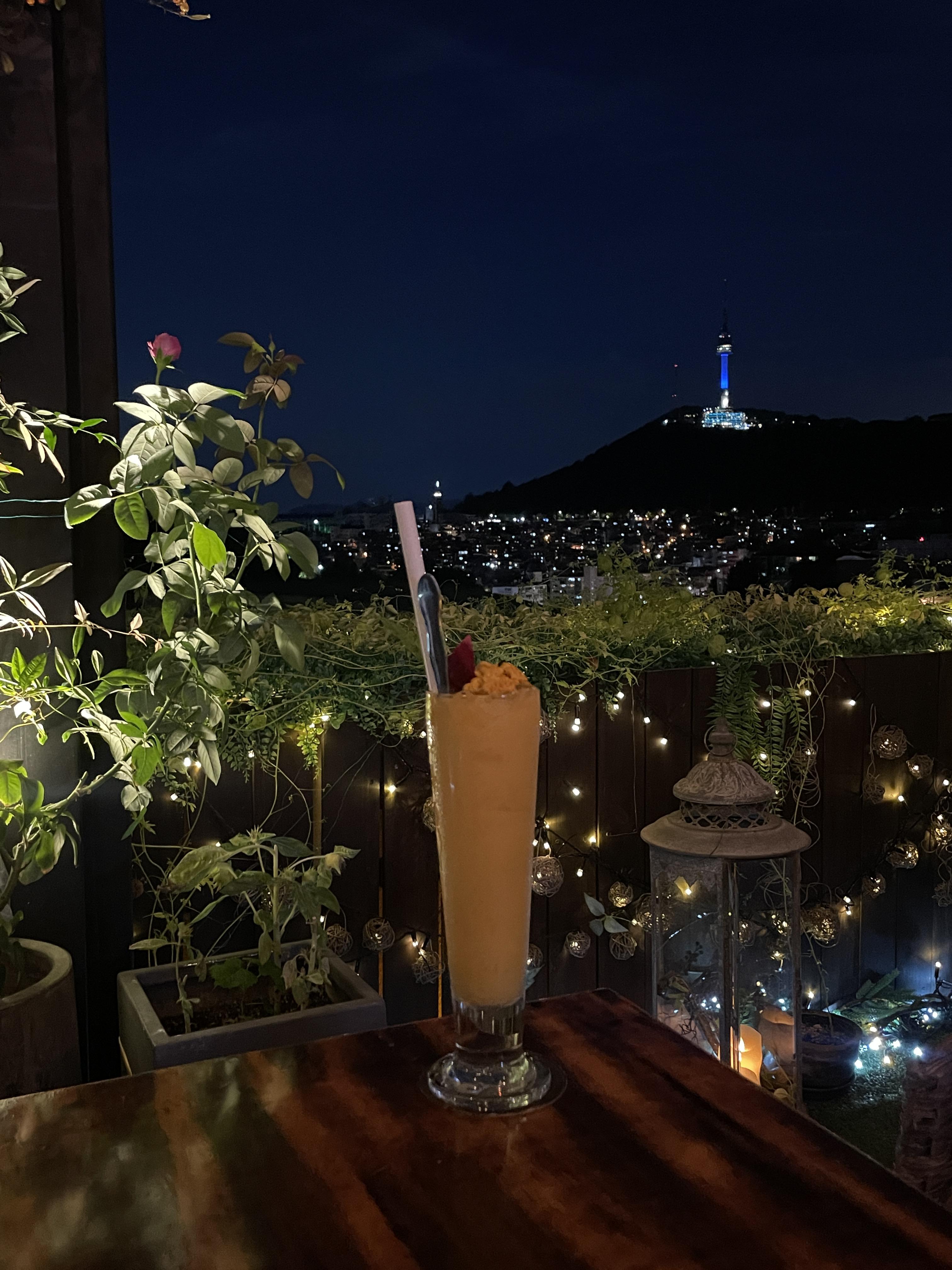 하지만 우리가 좋아했던 녹사평육교는 사람이 엄청 많이 늘어났었다. 나의 일몰 포인트였는데! 해 지는게 예뻐서 보다가 LP들으러 가려고 했는데 왠지 뷰가 예쁠 것 같아서 올라가자고 하길래 올라갔다가 이태원 최고 뷰맛집을 발견했다. 뷰가 너무 예쁘고 노을도 예쁜데 루프탑 분위기가 너무 마음에 쏙 들어서 다음주에 좋아하는 동생과 한번 더 찾기로 했다. 불꽃축제를 뷰맛집에서 보는 건 너무너무 완벽할꺼야